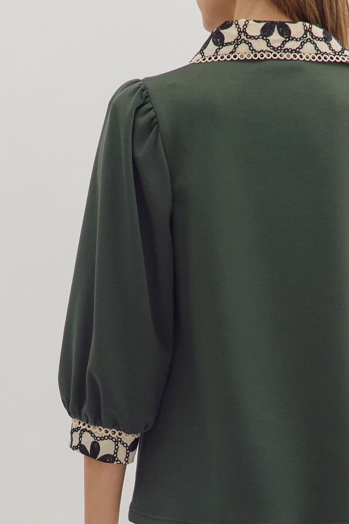 -Contrast floral lace collar and sleeves cuff